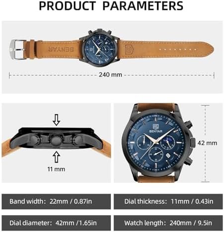 Shop Nowby BENYAR Watches for Men Chronograph Waterproof Luminous Date Men’s Wrist Watches Business Work Casual Sport Fashion Leather Strap Dress Watch Designer Elegant Gifts for Men : Clothing, Shoes & Jewelry
