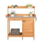 2 reviews for Easyfashion Outdoor Garden Potting Bench Metal Tabletop with Cabinet Drawer Open Shelf, Natural Wood