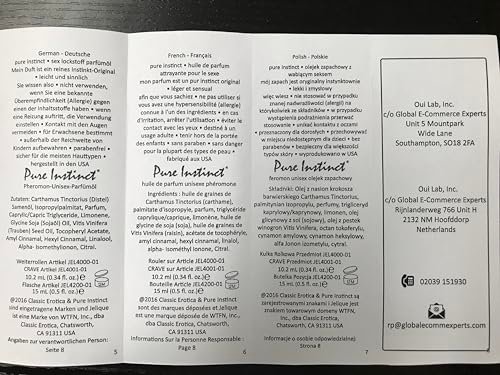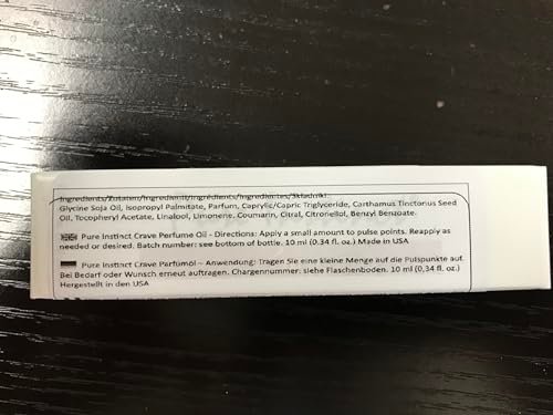 About this item More than 20 years ago, Pure Instinct changed the ways we feel about ourselves and reconnect with others. Again in 2021, Pure Instinct #pureinstinct took over TikTok as the most trusted and searched perfume and cologne with pheromone infused essential oil as it was used and loved by hundreds of thousands of individuals. Experience Pure Instinct today! The “ORIGINAL” formula with the most potent pheromone formulation (imported from Italy). Blend with your skin PH to create a one-of-a-kind scent. Rich & silky texture for the perfect massages. Use it in your next bath. Compatible with diffuser. Alluring and timeless fragrance that you can wear it alone or layer it with your favorite perfume/cologne. Body Safe – Made in USA and NOT Tested on Animals. FREE of Paraben, Gluten, Glycerin, Alcohol. 0.34oz / 10.2mL. TSA Travel Ready.
